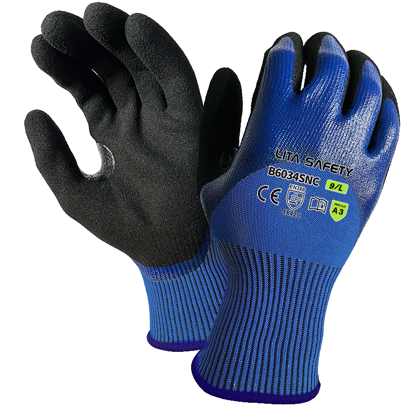 | Palm Coating | Blue smooth nitrile 3/4 coating + black sandy nitrile palm coating |