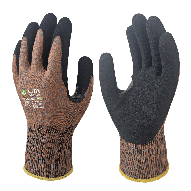 The foam nitrile palm coating delivers enhanced grip and breathability, while the reinforced nitrile thumb crotch strengthens high-wear areas for extended durability. Certified to ANSI/ISEA 105-2024 Cut Level A4 and EN 388: 4X42D, the GP180DSNR is ideal for precision tasks with moderate cut risks.